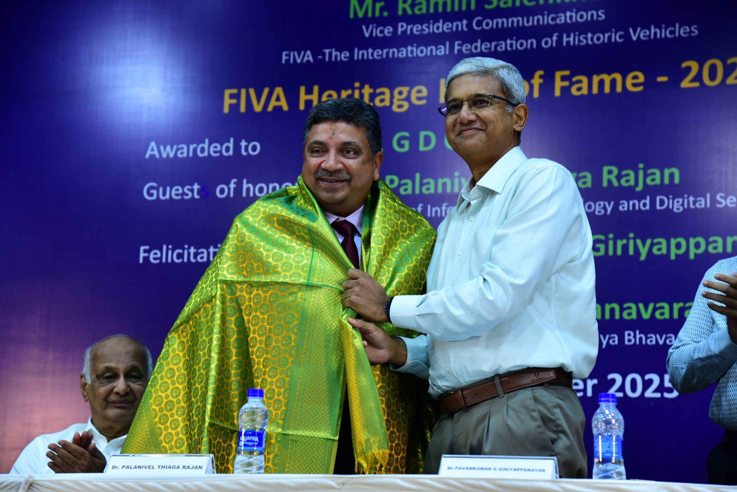 On this very occasion, Mr. G. D. Gopal, Chairman of G. D. Naidu Charities, was formally inducted into the FIVA Heritage Hall of Fame 2025, one of the highest international recognitions in the field of historic vehicle preservation.