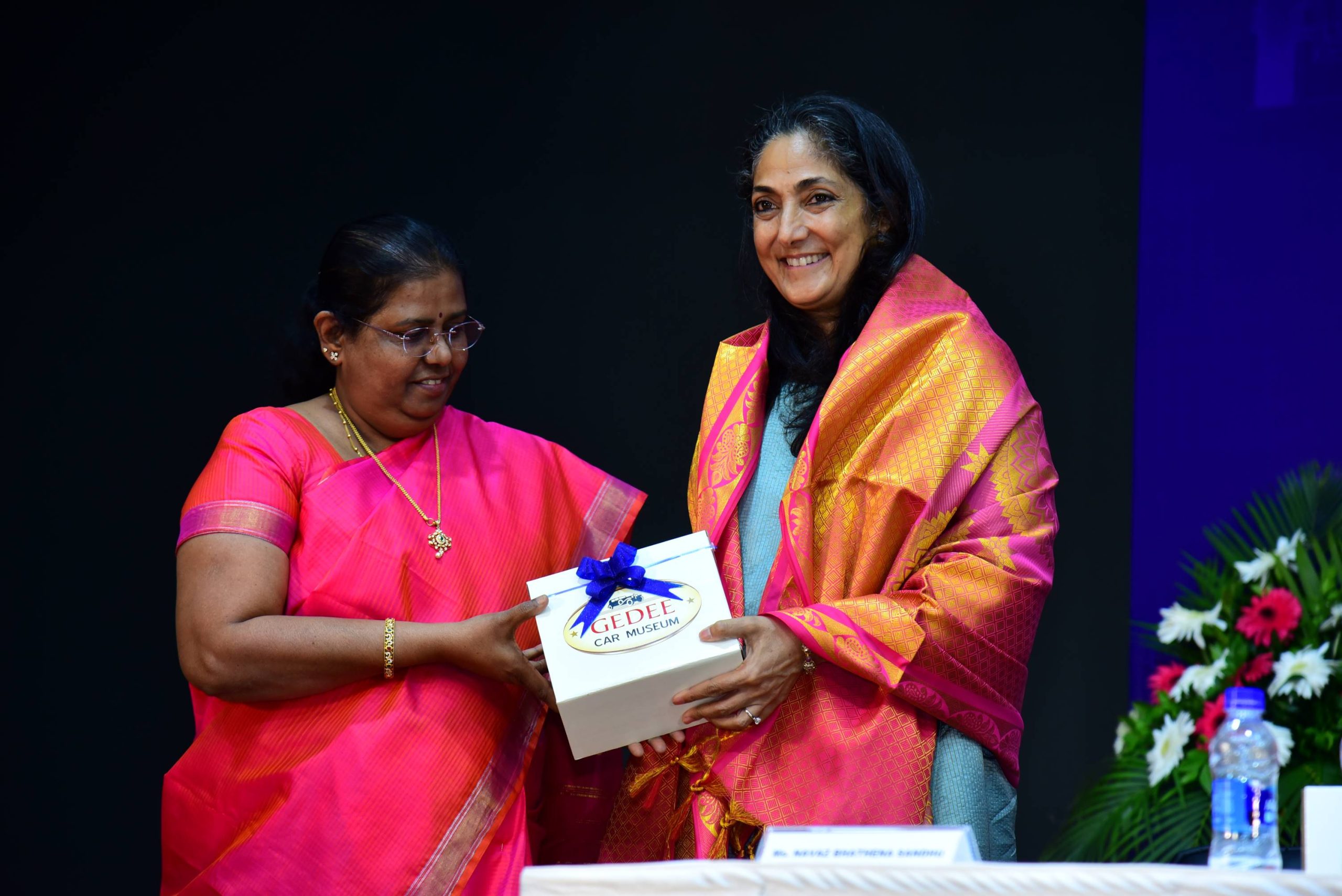 Our Trustee Ms. Akila Shanmugam giving a present to one of the FIVA committee guests.